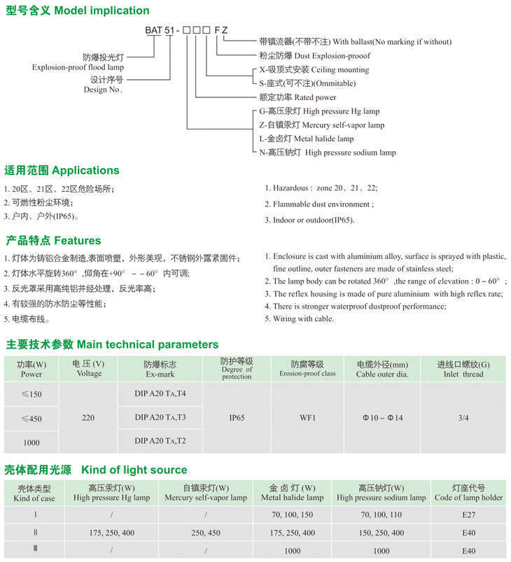BAT51-口F系列粉尘防爆投光灯