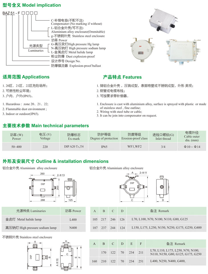 BAZ51-F系列粉尘防爆镇流器